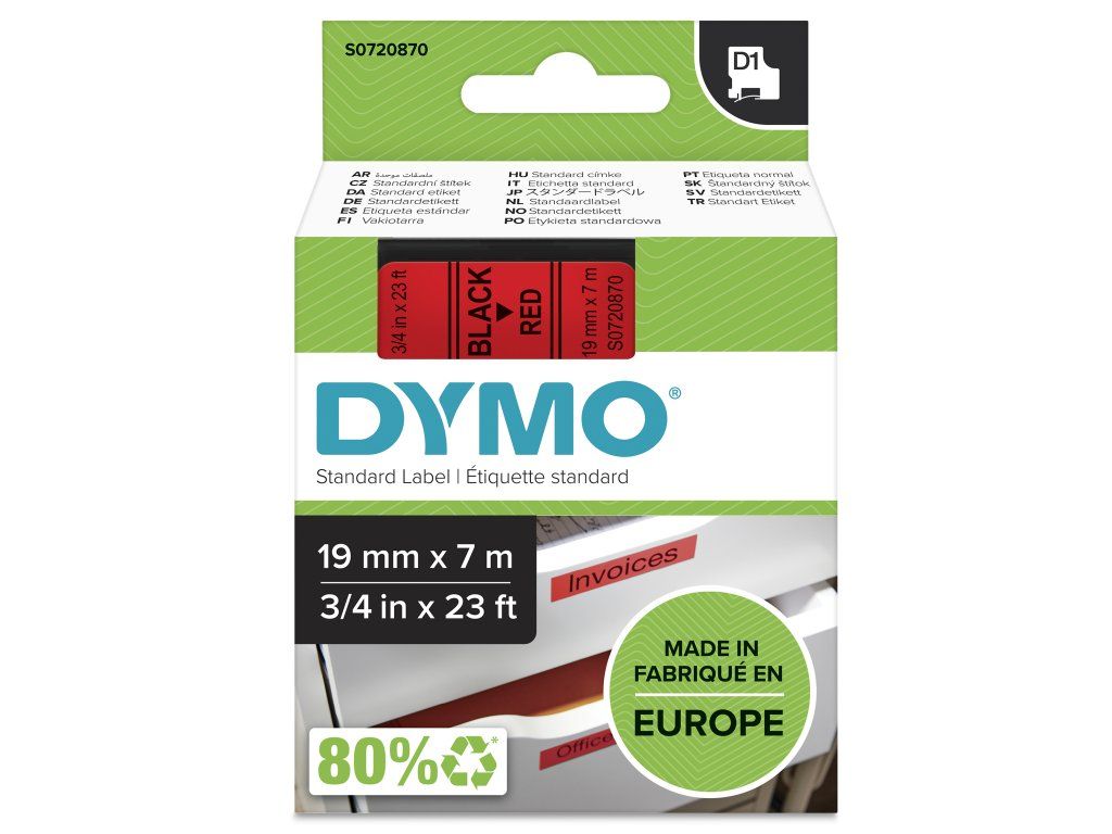 D1-TAPE 19MM X 7M/BLACK ON RED