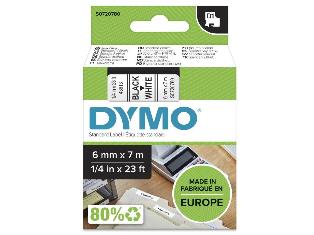 D1-TAPE 6MM X 7M/BLACK ON WHITE