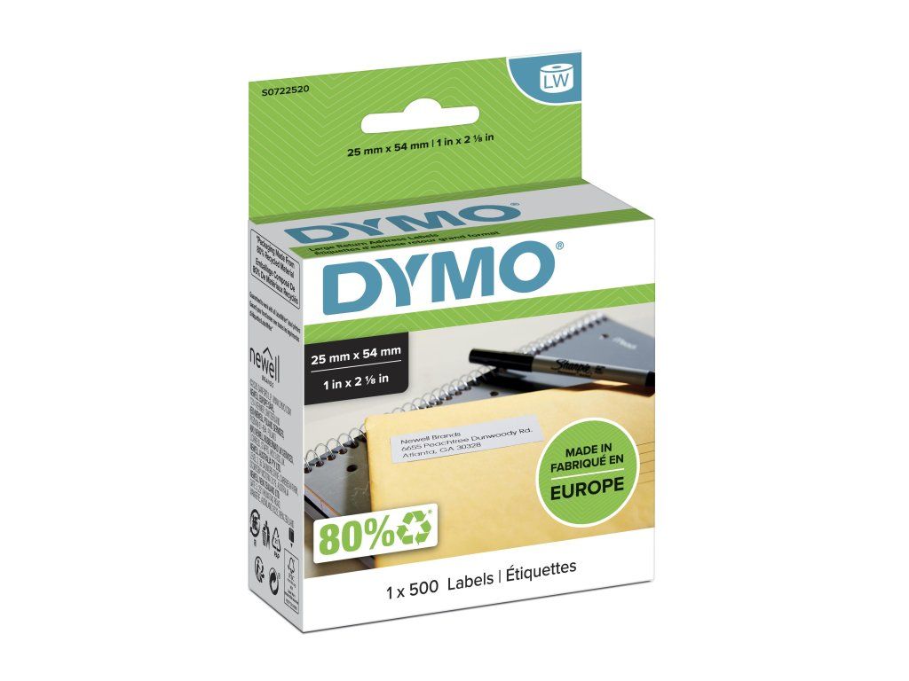 Available in a variety of colors and sizes, DYMO® LW labels use a direct thermal printing process so you never have to bother with messy, expensive ink or toner. And because they are packaged in rolls, you can print one label or hundreds with ease – no sheet label jams, no layout hassle and no waste.